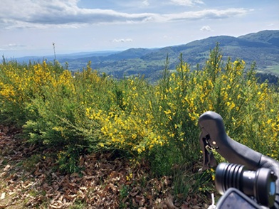 avec des vues imprenables me font oublier la chaleur et la fatigue qui arrive progressivement. Une participante à l’accent du sud m’aborde dans une descente : « je descends plus vite que toi. C’est que je suis trop lourde ». En gentleman je lui tiens un propos rassurant en lui précisant qu’elle est plus grande que moi. Après un éclat de rire nous partageons autour de nos expériences d’itinérance et de la liberté qu’offre ce type de roadtrip. Nous nous arrêtons pour photographier le château des Boscs. Hélas, la végétation masque ce monument du 15ème siècle. Aucun de nous 2 n’a le courage de remonter de 200 mètres pour réaliser le cliché. Chacun reprend son rythme pour rouler solo. La chaleur m’accable. Mon eau est chaude. Je mastique des crocodiles Haribo de temps à autres. J’enquille les Km. Je suis étonné lorsque j’aperçois le panneau d’entrée de Lamastre. Je n’avais pas l’impression d’avoir roulé 60Km ce qui représente une excellente nouvelle. Comme prévu j’y prends mon déjeuner. Je trouve une boulangerie démunie de pâté en croûte à mon grand désespoir. Je me replie sur une part de pizza poulet champignons complétée d’une tartelette aux fraises et d’une canette de coca. Lorsque je demande à la vendeuse de me chauffer la pizza la jeune dame me répond que le four est éteint sans possibilité de le remettre en service. Une pizza poulet champignons froide c’est dégueu ! J’en laisserai la moitié.