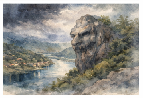 incarne la ruse, l’orgueil et la tentation. Souvent dupé par l’ingéniosité des hommes, il laisse derrière lui des traces de pierre et de feu, rappelant que l’intelligence et la sagesse peuvent triompher de la peur.